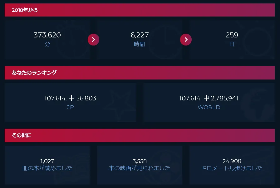 改めて、ゲームで遊んでいた時間を数字で見てみると、この時間を勉強とか他の有意義になることをしていればどういう人生になっていたんだろうと考えてしまいますね。