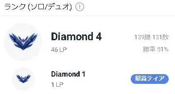 シーズン8以降はメインADC・サブSUPでプラチナに到達し、シーズン10以降はダイヤモンドに到達しました。
